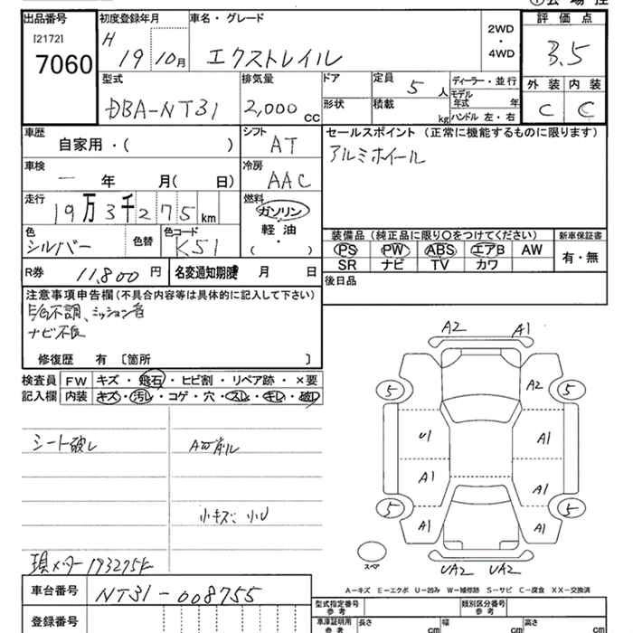 | 25S | CBA-TNT31 | QR25DE | Full-time 4WD | CVT | 2488cc | 170ps(125kW)/6000rpm | AИ-92 | 2 310 000 | |