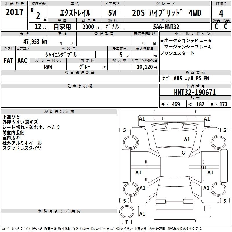 | AUTECH HYBRID I PACKAGE | DAA-HNT32 | MR20DD | Full-time 4WD | CVT | 1997cc | 147ps(108kW)/6000rpm | AИ-92 | 4 009 500 | |