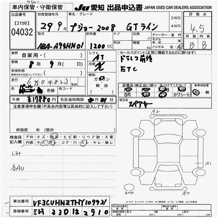 Статус выставлен на аукцион Лот 4032 Аукцион JU Aichi Дата аукциона 19.03.2026