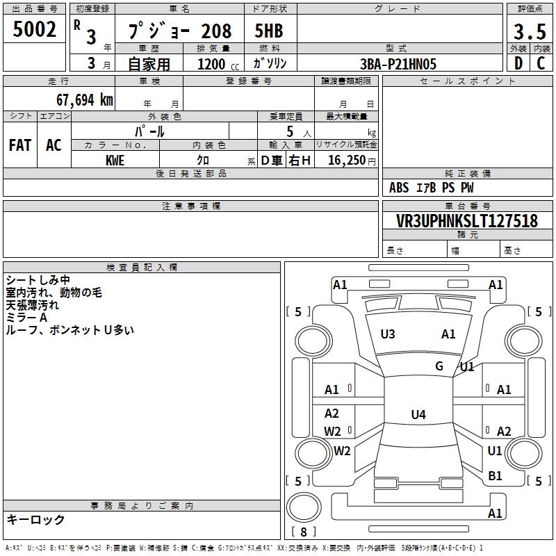 PEUGEOT 208 2021 г., лот № 5002