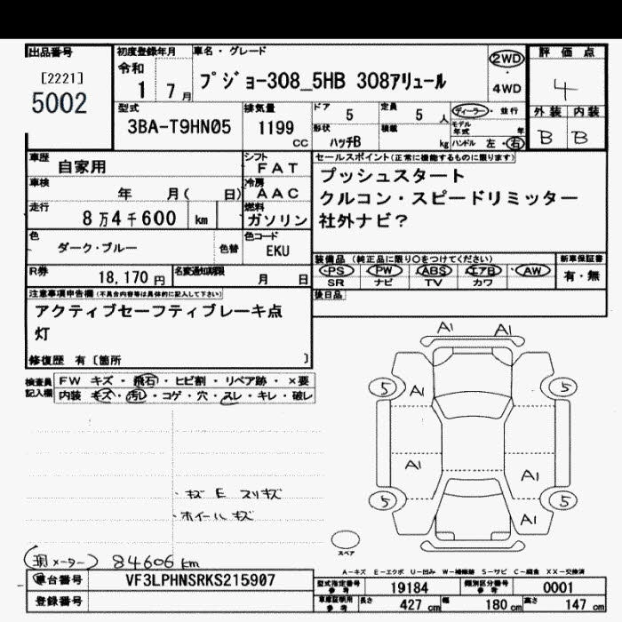 | GT LINE BLUE HDI | LDA-T9YH01 | ---- | FF | 8AT | 1498cc | 130ps(96kW)/3750rpm | Дизельное топливо | 3 360 000 | |