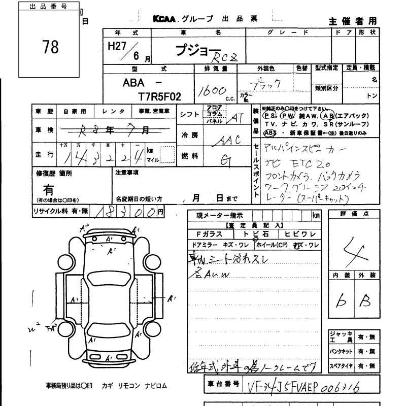 | CARBON ROOF PACK | ABA-T7R5F02 | ---- | FF | 6AT | 1598cc | 156ps(115kW)/6000rpm | AИ-95 | 4 643 600 | |