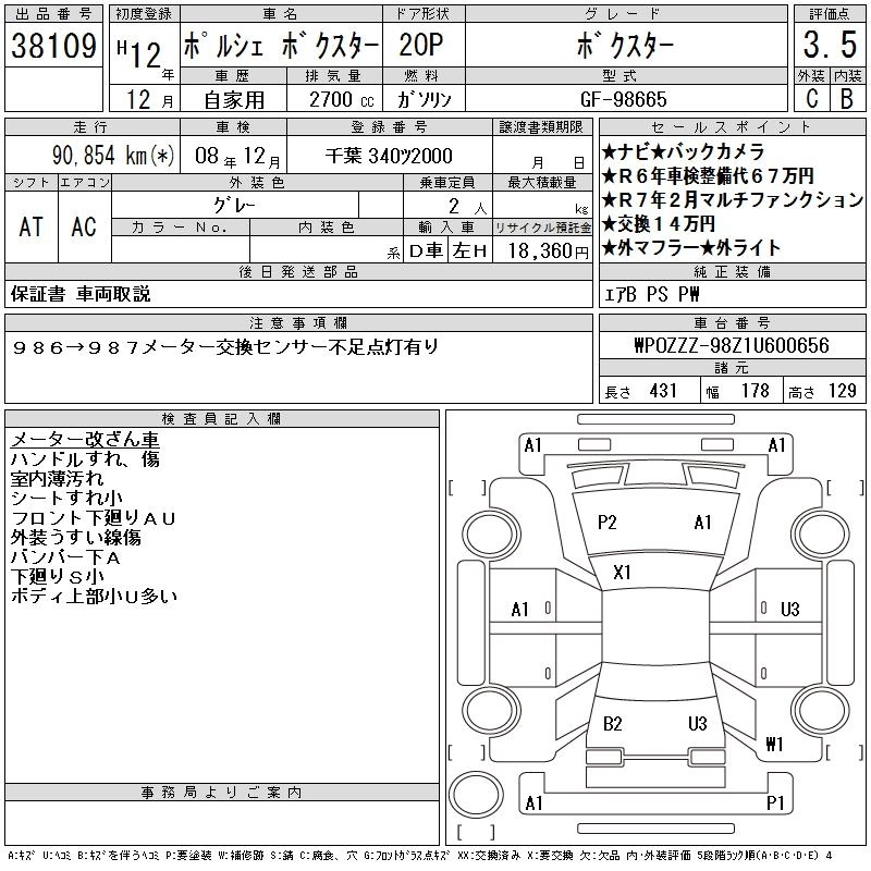 Комплектации для PORSCHE BOXSTER