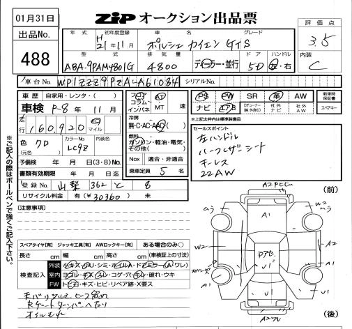 | GTS PORSCHE DESIGN EDITION 3 | ABA-9PAM4801G | ---- | Full-time 4WD | 6AT | 4806cc | 405ps(298kW)/6500rpm | AИ-95 | 12 910 000 |