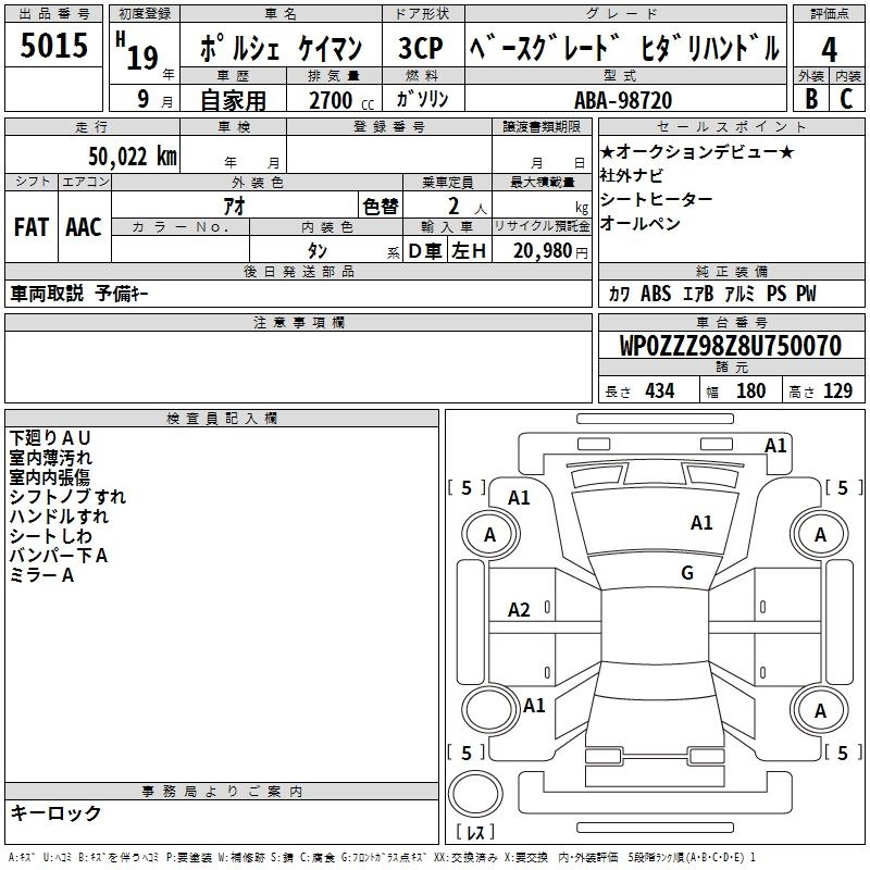 | S PORSCHE DESIGN EDITION 1 | ABA-98721 | ---- | Mid-ship | 5AT | 3387cc | 295ps(217kW)/6250rpm | AИ-95 | 9 530 000 | |
