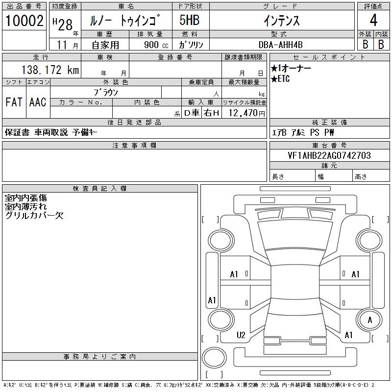 | INTENS | DBA-AHH4B | H4B | RR | 6AT | 897cc | 90ps(66kW)/5500rpm | AИ-95 | 1 890 000 | |