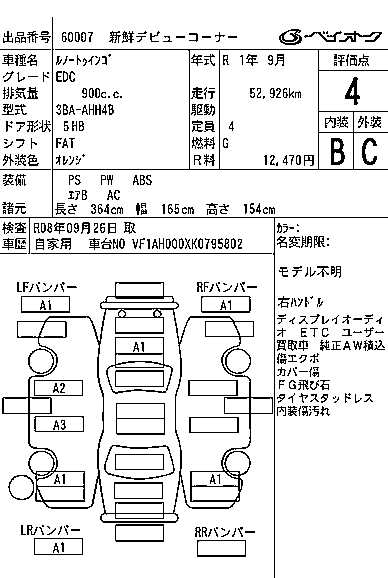 | EDC | 3BA-AHH4B | H4B | RR | 6AT | 897cc | 92ps(68kW)/5500rpm | AИ-95 | 1 950 000 |