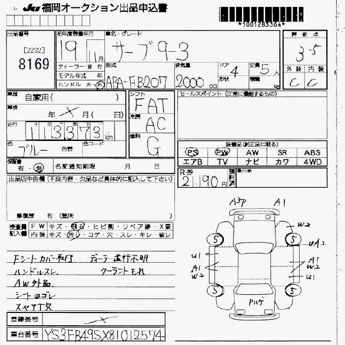 Статус выставлен на аукцион Лот 8169 Аукцион JU Fukuoka Дата аукциона 30.01.2026