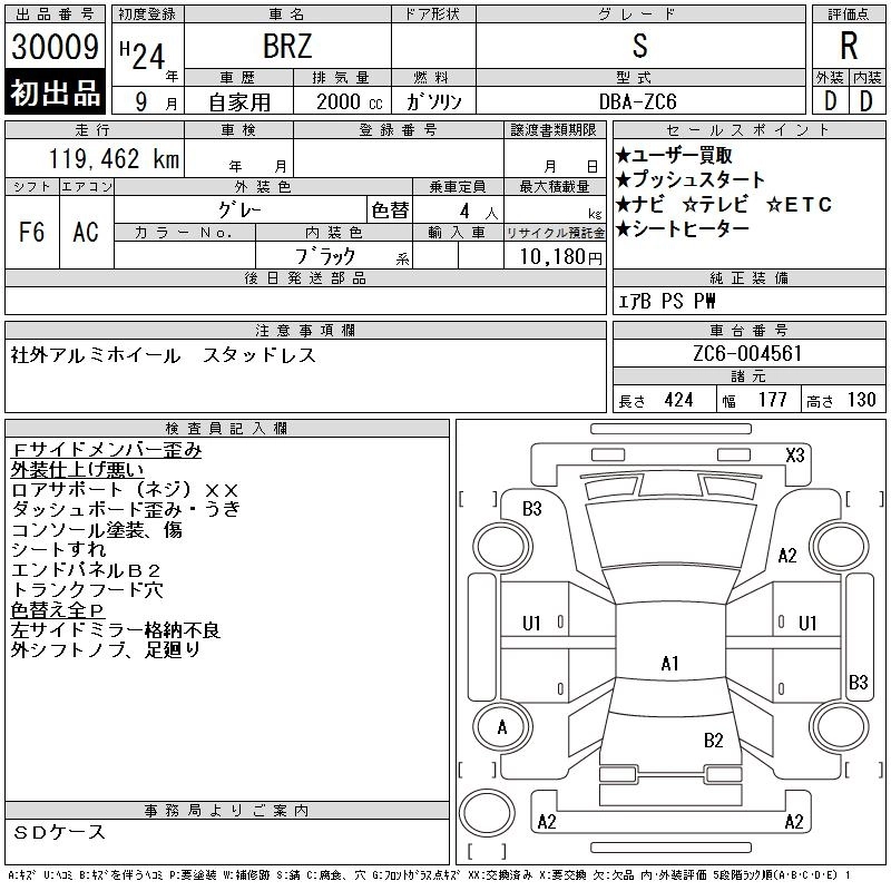 | S | DBA-ZC6 | FA20 | FR | 6AT | 1998cc | 200ps(147kW)/7000rpm | AИ-95 | 2 871 750 | |