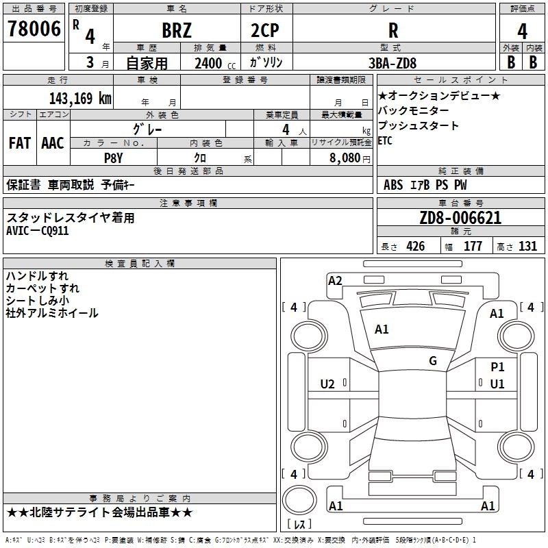 Статус выставлен на аукцион Лот 78006 Аукцион TAA Chubu Дата аукциона 19.03.2026