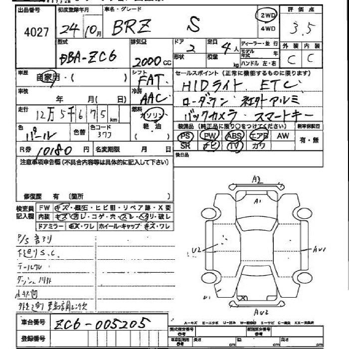 | S | DBA-ZC6 | FA20 | FR | 6MT | 1998cc | 200ps(147kW)/7000rpm | AИ-95 | 2 793 000 | |