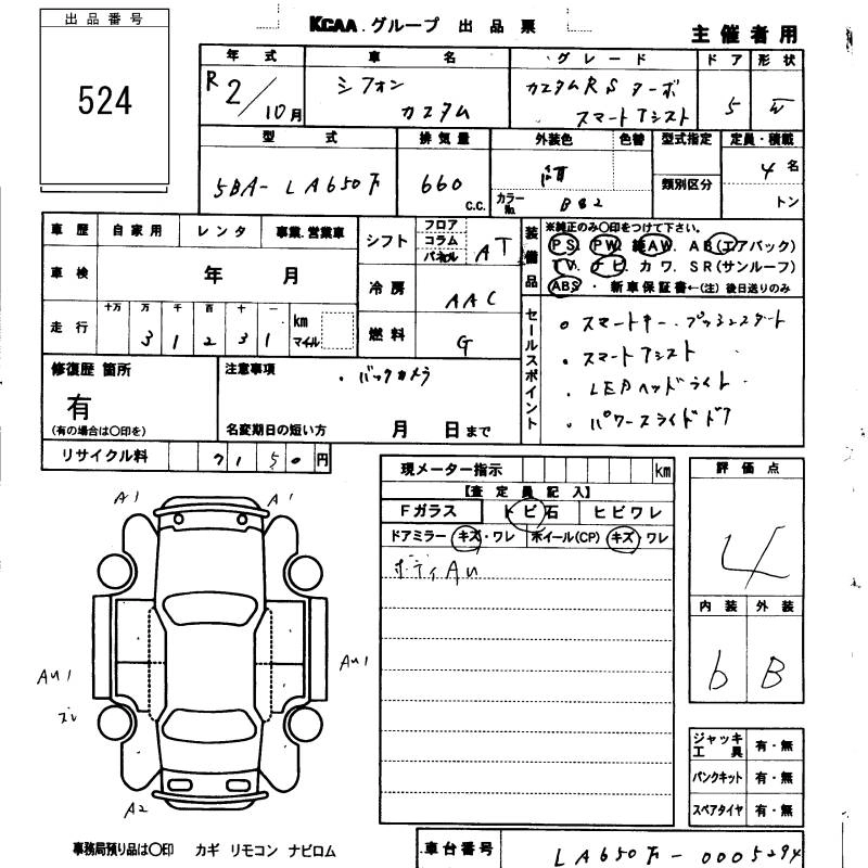 SUBARU CHIFFON 2020 г., лот № 524