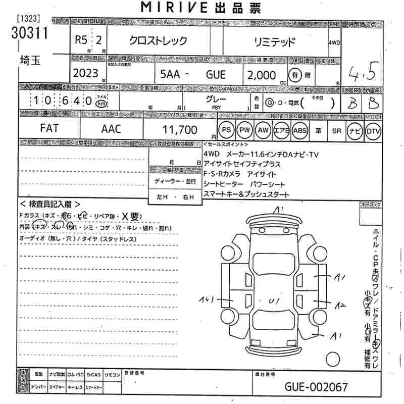 Статус не продан Лот 30311 Аукцион MIRIVE Saitama Дата аукциона 25.03.2026