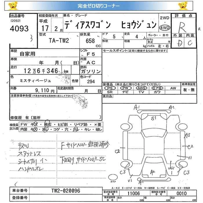 | BASE GRADE | TA-TW2 | EN07 | Full-time 4WD | 3AT | 658cc | 48ps(35kW)/6400rpm | AИ-92 | 1 392 300 | |
