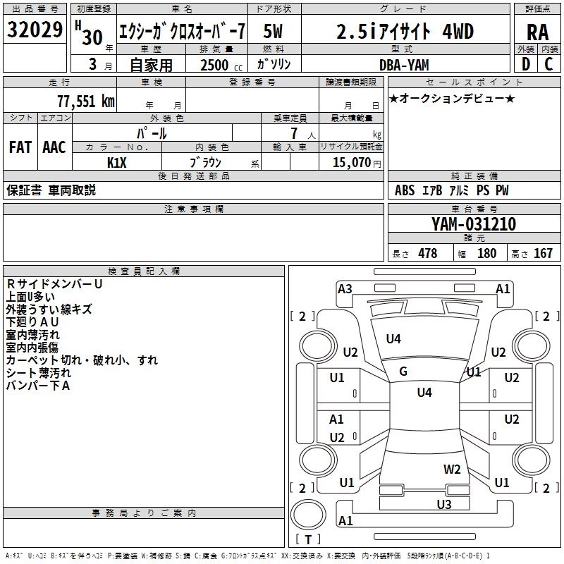 SUBARU EXIGA CROSSOVER 7 2018 г., лот № 32029