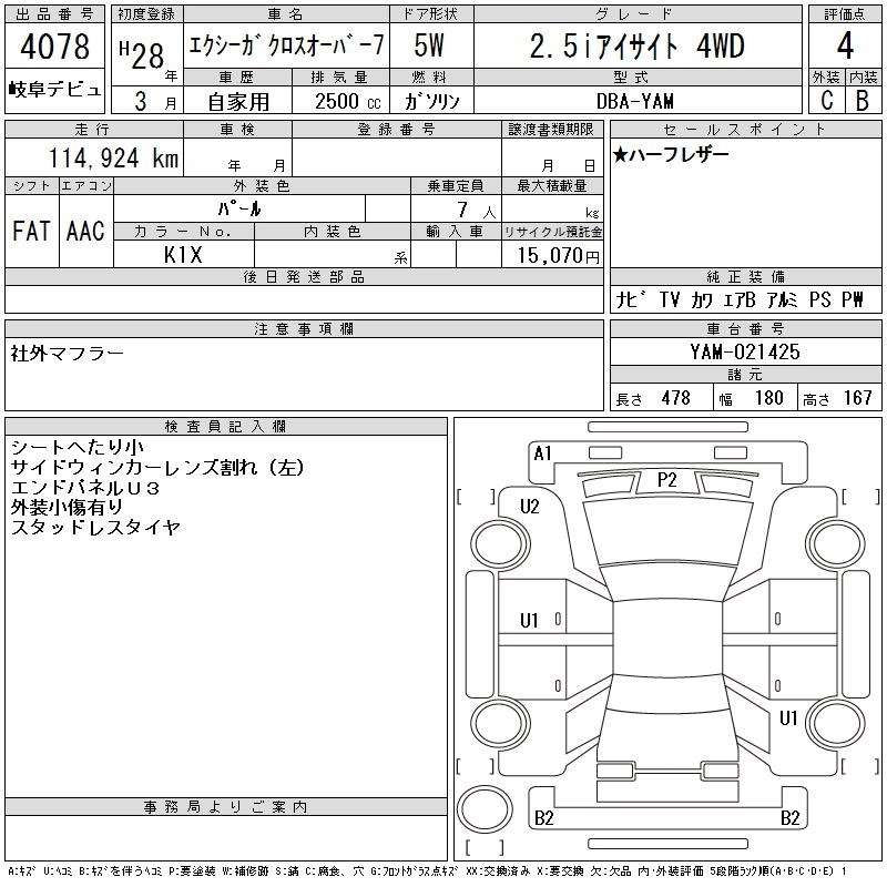 SUBARU EXIGA CROSSOVER 7 2016 г., лот № 4078