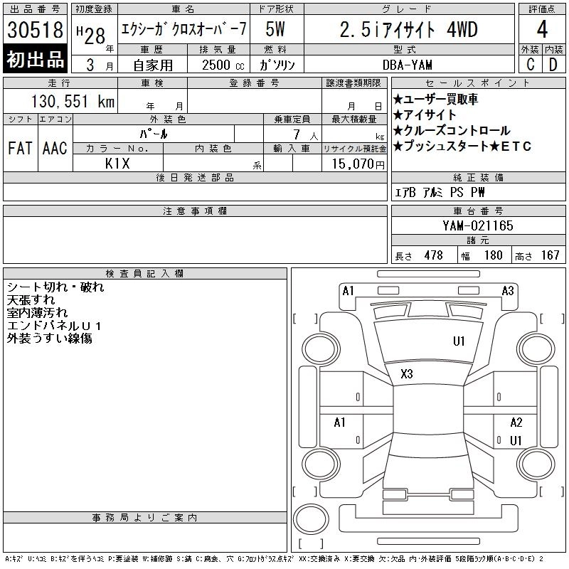 SUBARU EXIGA CROSSOVER 7 2016 г., лот № 30518