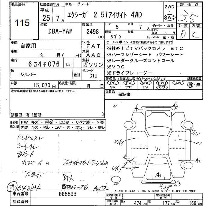 | 2.5I EYESIGHT | DBA-YAM | FB25 | Full-time 4WD | CVT | 2498cc | 173ps(127kW)/5600rpm | AИ-92 | 2 520 000 | |