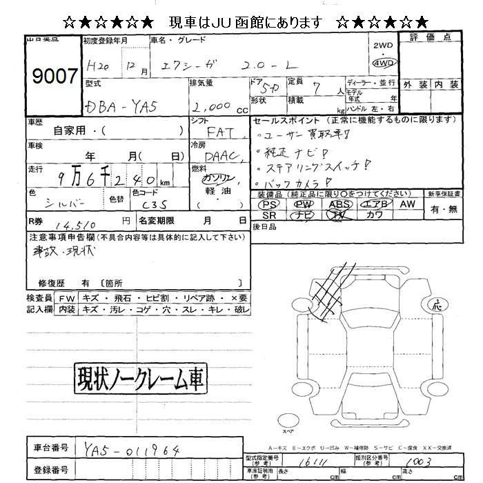| 2.0I | DBA-YA5 | EJ20 | Full-time 4WD | 4AT | 1994cc | 148ps(109kW)/6000rpm | AИ-92 | 2 152 500 | |