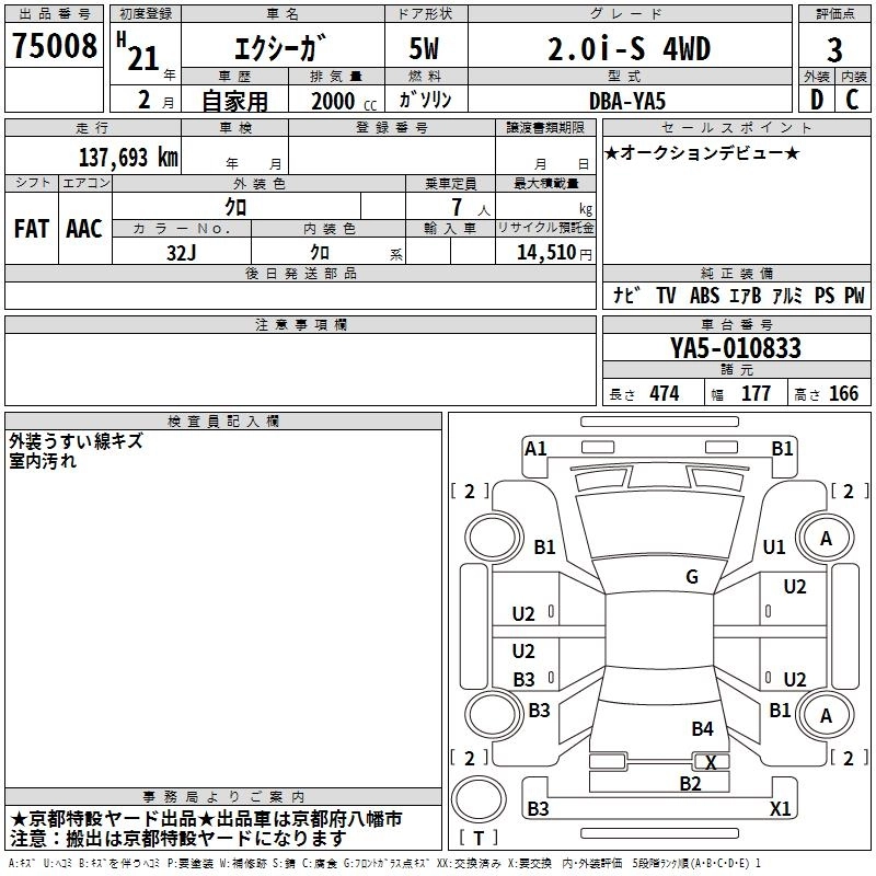 | 2.0I S STYLE | DBA-YA5 | EJ20 | Full-time 4WD | 4AT | 1994cc | 148ps(109kW)/6000rpm | AИ-92 | 2 131 500 | |