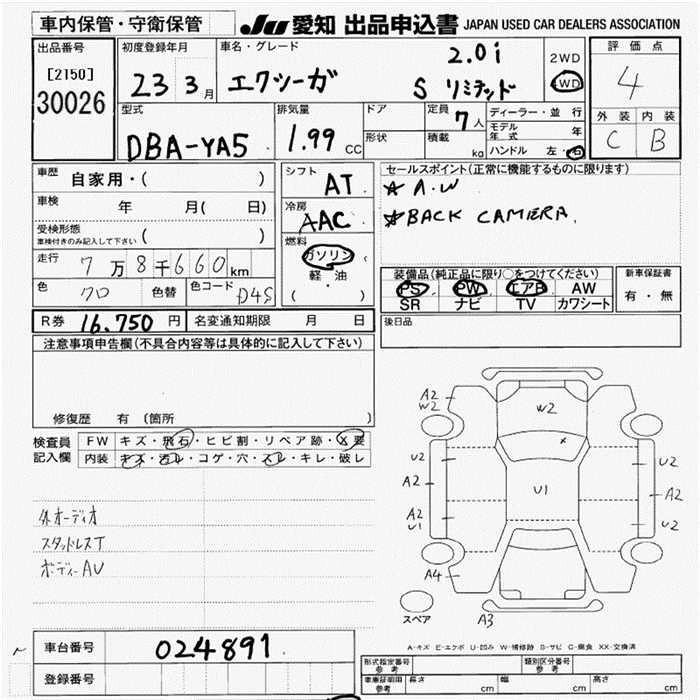 | 2.0I | DBA-YA5 | EJ20 | Full-time 4WD | CVT | 1994cc | 150ps(110kW)/6000rpm | AИ-92 | 2 184 000 | |