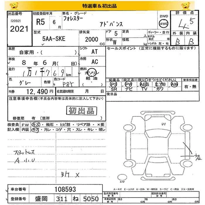SUBARU FORESTER 2023 г., лот № 2021