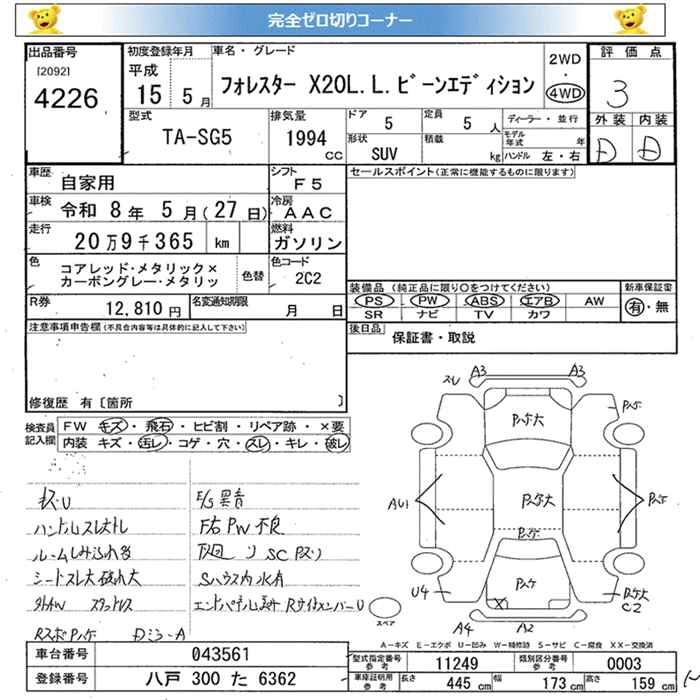 | X20 L.L.BEAN EDITION | TA-SG5 | EJ20 | Full-time 4WD | 5MT | 1994cc | 137ps(101kW)/5600rpm | AИ-92 | 2 098 000 | |