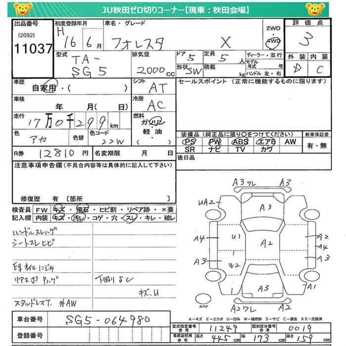 | X | TA-SG5 | EJ20 | Full-time 4WD | 5MT | 1994cc | 137ps(101kW)/5600rpm | AИ-92 | 1 874 250 |