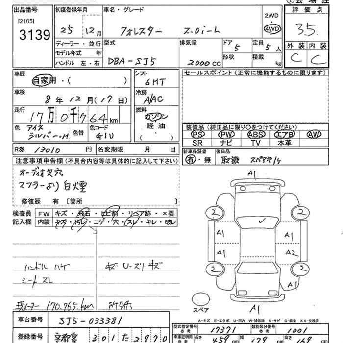 | 2.0I-S EYE SIGHT | DBA-SJ5 | FB20 | Full-time 4WD | CVT | 1995cc | 148ps(109kW)/6200rpm | AИ-92 | 2 740 500 | |