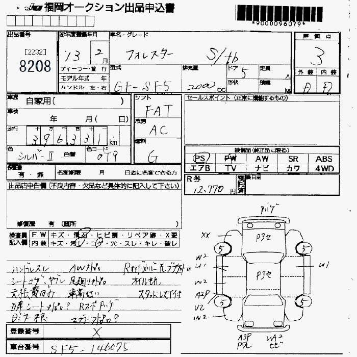 | S/20 TYPE A | GF-SF5 | EJ20 | Full-time 4WD | 4AT | 1994cc | 137ps(101kW)/5600rpm | AИ-92 | 2 110 000 | |