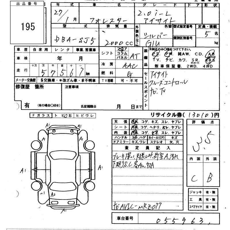 | S-LIMITED | DBA-SJ5 | FB20 | Full-time 4WD | CVT | 1995cc | 148ps(109kW)/6200rpm | AИ-92 | 2 894 400 | |