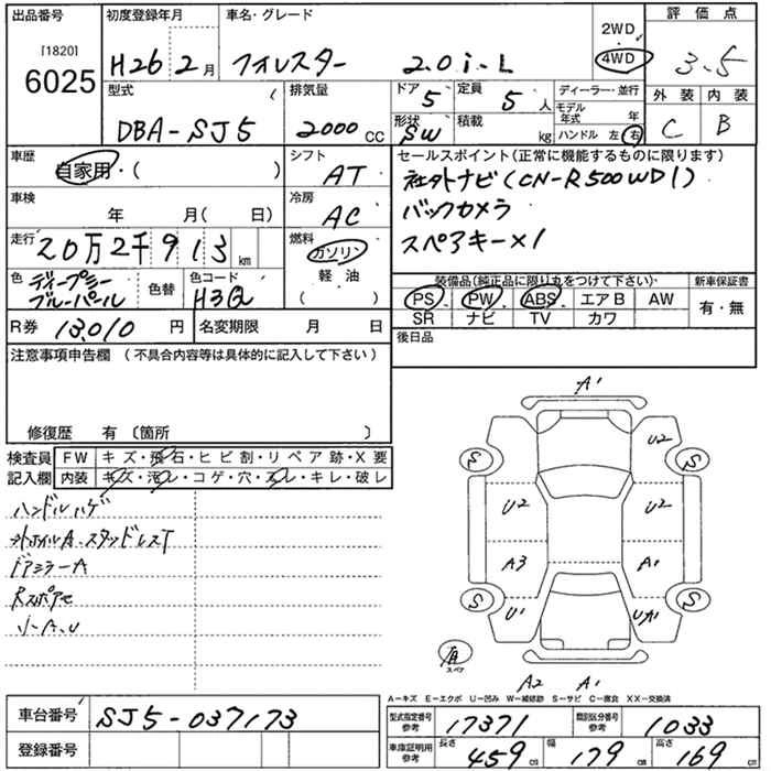 | S-LIMITED | DBA-SJ5 | FB20 | Full-time 4WD | CVT | 1995cc | 148ps(109kW)/6200rpm | AИ-92 | 2 829 600 | |