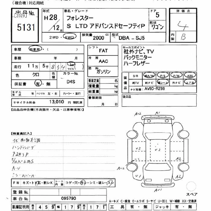 | S-LIMITED BROWN LEATHER SELECTION | DBA-SJ5 | FB20 | Full-time 4WD | CVT | 1995cc | 148ps(109kW)/6200rpm | AИ-92 | 3 132 000 |