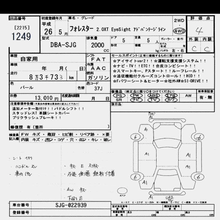 | 2.0XT | DBA-SJG | FA20 | Full-time 4WD | CVT | 1998cc | 280ps(206kW)/5700rpm | AИ-95 | 2 912 760 | |