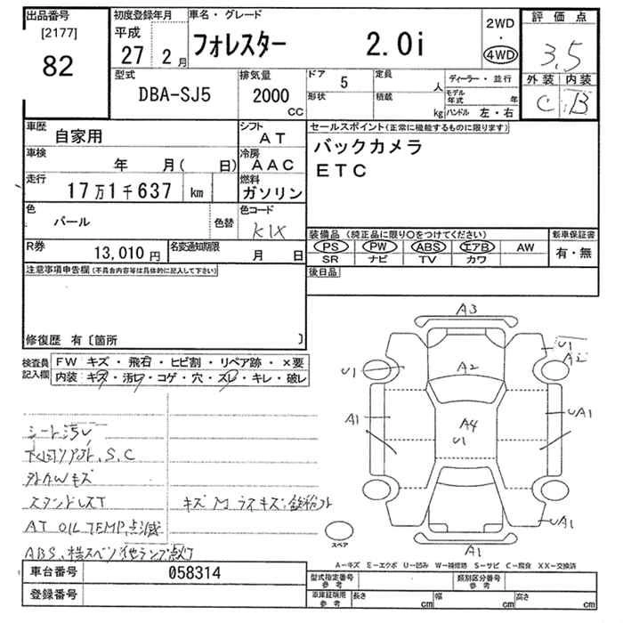 SUBARU FORESTER 2015 г., лот № 82