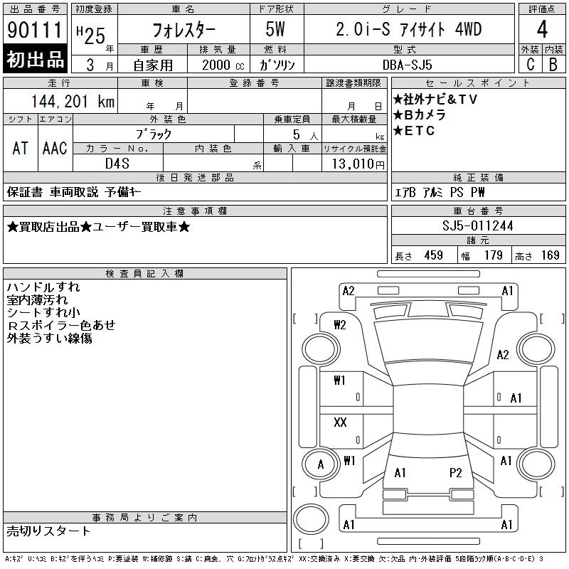 | 2.0I-S EYE SIGHT | DBA-SJ5 | FB20 | Full-time 4WD | CVT | 1995cc | 148ps(109kW)/6200rpm | AИ-92 | 2 740 500 | |