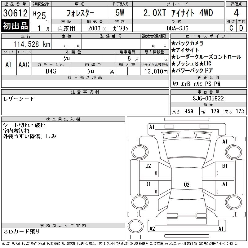 Год выпуска2013 Пробег 115 000 км КузовSJG Комплектация2.0XT EYESIGHT 4WD