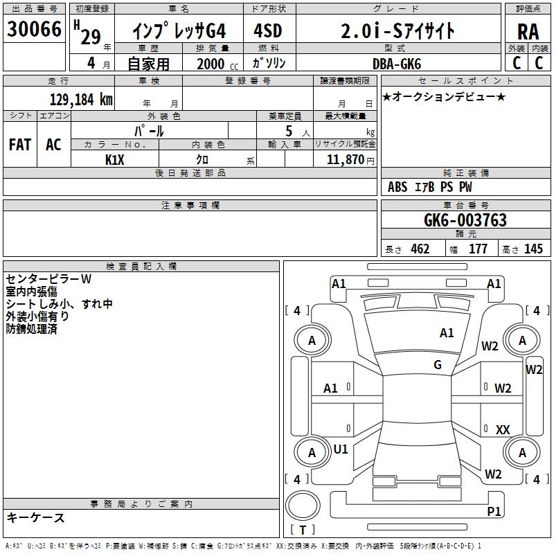 | 2.0I-S EYE SIGHT | DBA-GK6 | FB20 | FF | CVT | 1995cc | 154ps(113kW)/6000rpm | AИ-92 | 2 397 600 | |