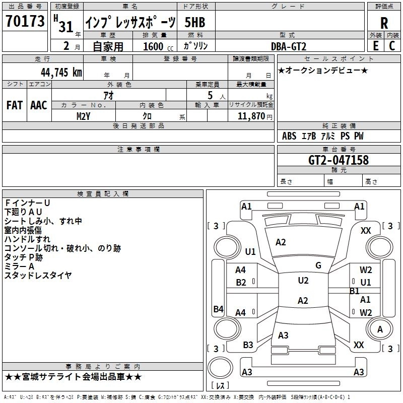 SUBARU IMPREZA SPORT 2019 г., лот № 70173