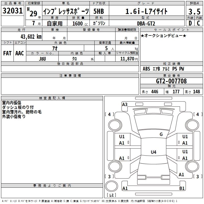 SUBARU IMPREZA SPORT 2017 г., лот № 32031