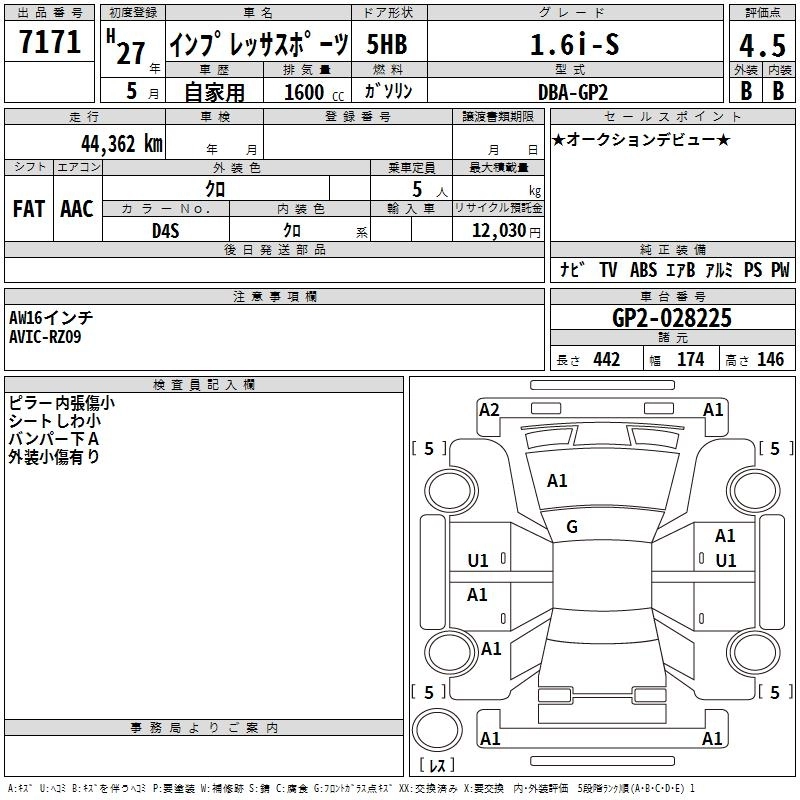 SUBARU IMPREZA SPORT 2015 г., лот № 7171