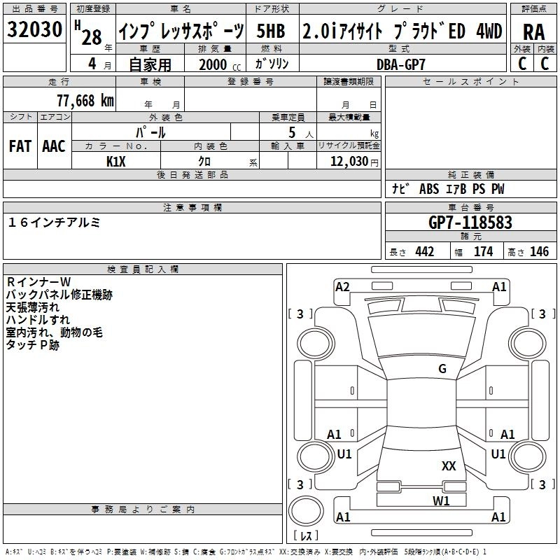 Год выпуска2016 Пробег 78 000 км КузовGP7 Комплектация2.0I EYESIGHT PRA UDO4WD