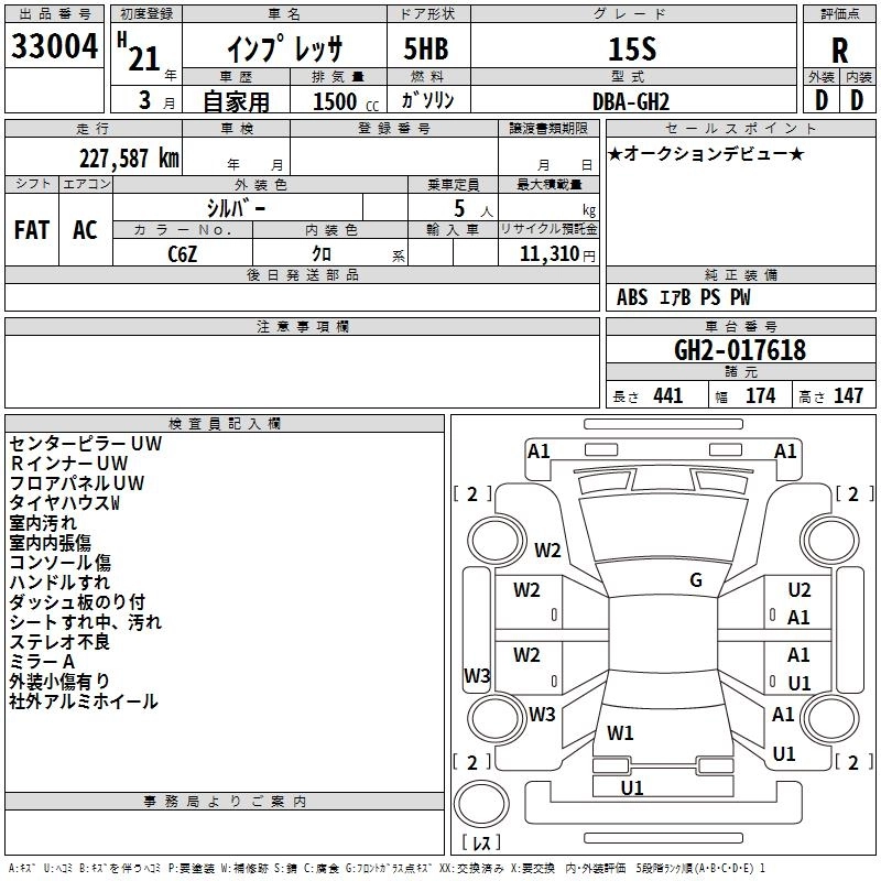 | WRX STI A LINE | CBA-GRF | EJ25 | Full-time 4WD | 5AT | 2457cc | 300ps(221kW)/6200rpm | AИ-95 | 3 150 000 |