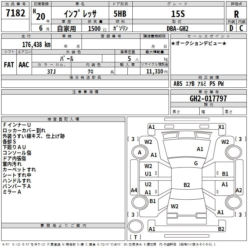 | 2.0I-S | DBA-GH6 | EJ20 | FF | 4AT | 1994cc | 140ps(103kW)/5600rpm | AИ-92 | 1 963 500 | |
