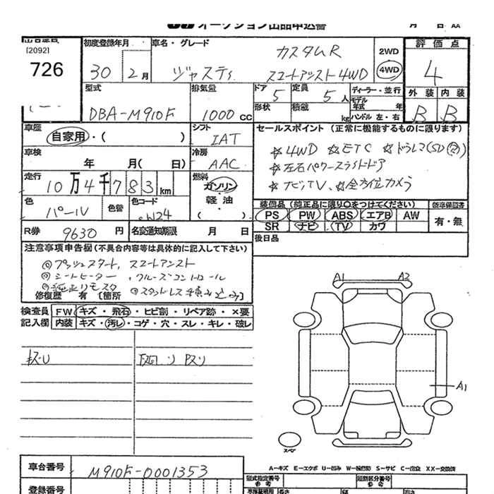 | G SMART ASSIST | DBA-M910F | 1KR-FE | Full-time 4WD | CVT | 996cc | 69ps(51kW)/6000rpm | AИ-92 | 1 904 040 | |