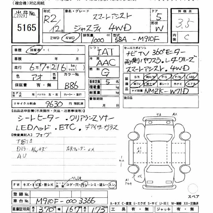 | BASE GRADE | 5BA-M910F | 1KR-FE | Full-time 4WD | CVT | 996cc | 69ps(51kW)/6000rpm | AИ-92 | 2 164 800 | |