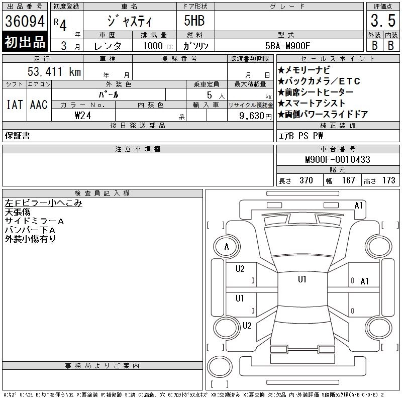 SUBARU JUSTY 2022 г., лот № 36094