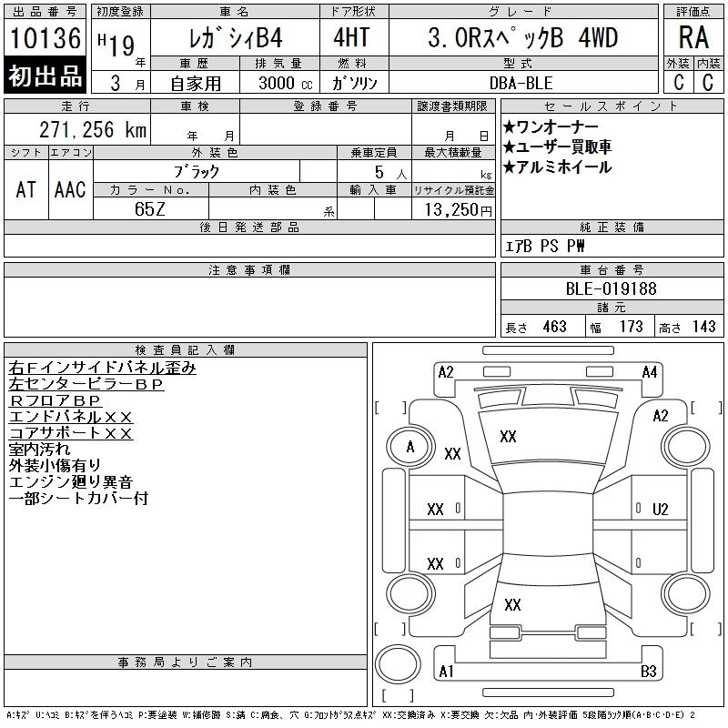 | 2.5I URBAN SELECTION | DBA-BL9 | EJ25 | Full-time 4WD | 4AT | 2457cc | 177ps(130kW)/6000rpm | AИ-92 | 2 525 250 | |