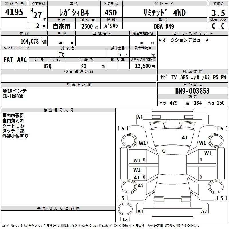 | LIMITED | DBA-BN9 | FB25 | Full-time 4WD | CVT | 2498cc | 175ps(129kW)/5800rpm | AИ-92 | 3 132 000 | |