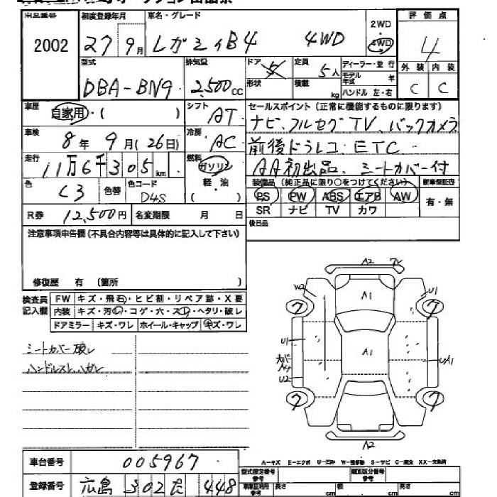 | BASE GRADE | DBA-BN9 | FB25 | Full-time 4WD | CVT | 2498cc | 175ps(129kW)/5800rpm | AИ-92 | 2 916 000 |
